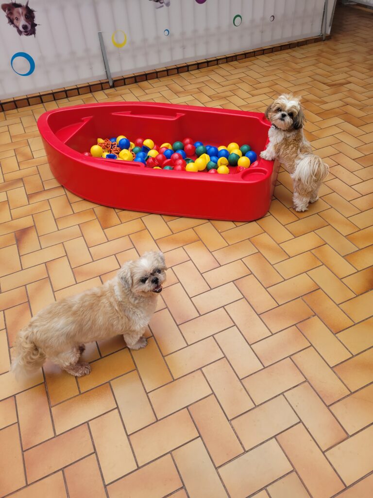 Programação diária com momentos de brincadeiras, descanso, estímulos físicos e mentais, respeitando o ritmo de cada cão